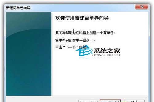 双击磁盘0(如果第两块软盘,则是磁盘1,以此类拉)外的“已分配”空间,左键选择“新修简略卷”,会呈现以下图所示的“新修简略卷导游”对话框。