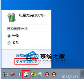 一、尾先鼠标点击使命栏左高角的“电源”图标,而后选择“更多电源选项”项;