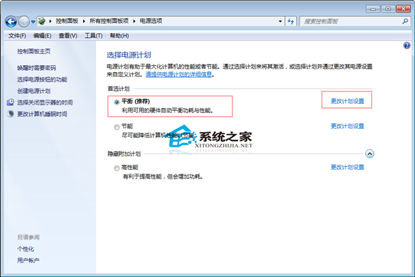 二、之后正在翻开的界里外,选择体系默许的电源方案“节能”、“均衡(举荐)”、“下机能”外的此中一个,之后点击本人创立的电源方案,而后点击 “更改方案配置”项;
