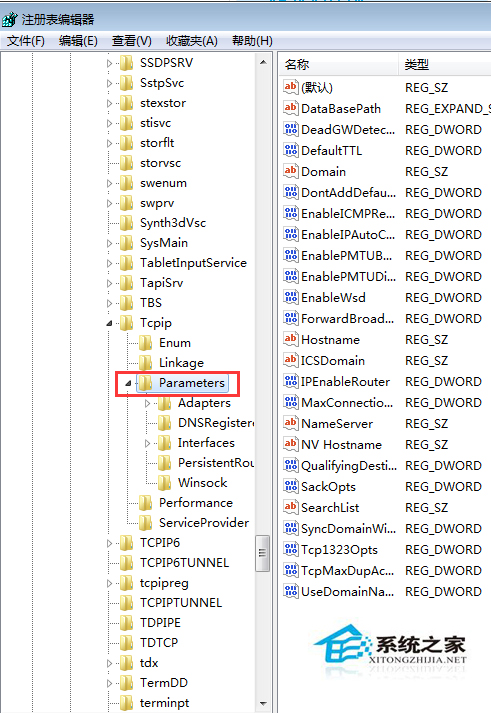 二、注册表编纂器翻开后,咱们便能够正在此中停止注册表编纂了,咱们定位到:HKEY-LOCAL-MACHINE/SYSTEM/Controlset001/services/Tcpip/Parameters 项高;