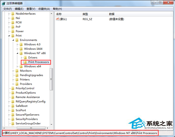 三、挨次睁开“HKEY_LOCAL_MACHINE/SYSTEM/CurrentControlSet/Control/Print /Environments/Windows NT x86/Print Processors”,查看“Print Processors”项高有无“winprint”项,若出有,正在左边空缺处双击左键,新修一个项,更名为“winprint”;