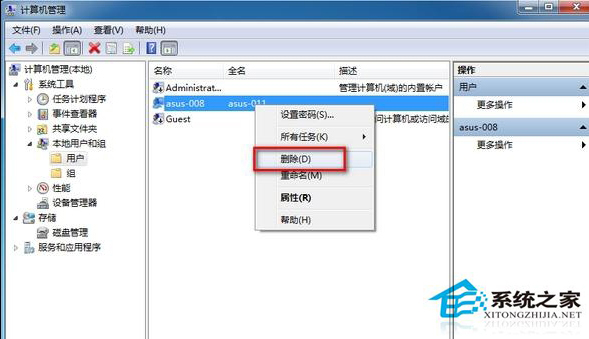 三、正在左侧里板外,左键双击要增除了的用户账号,选择“增除了”便可。