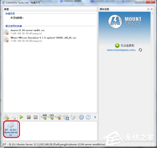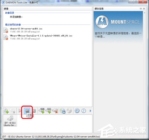 二、而后点击高图所标识的按钮,对选择的虚构光驱停止“光盘镜像”卸载;
