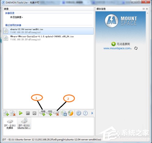 以下图所示,图外的标识为1的按钮是加添更多的虚构光驱,标识为2的按钮是移除了没有须要的光驱;