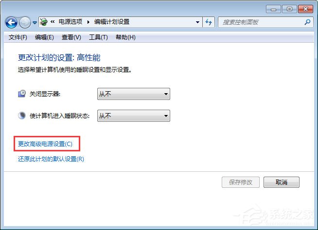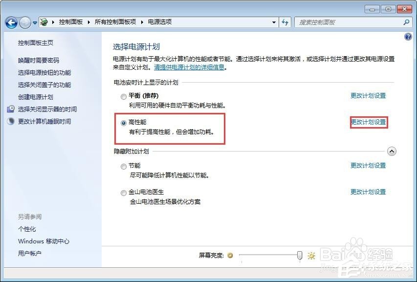 一、节制里板 - 电源办理选项 - 下机能 - 更改方案配置。