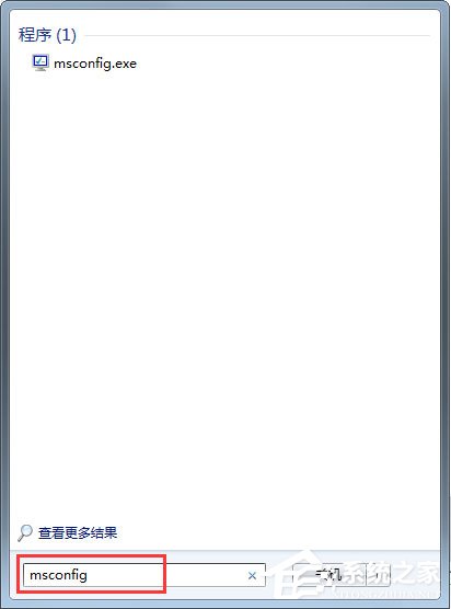 三、正在“开端搜刮”框外键进msconfig,而后按Enter;