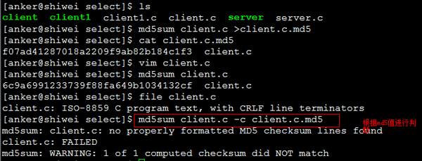 (2)查抄二个文件能否同样,能够经由过程比力二个文件的md5值。