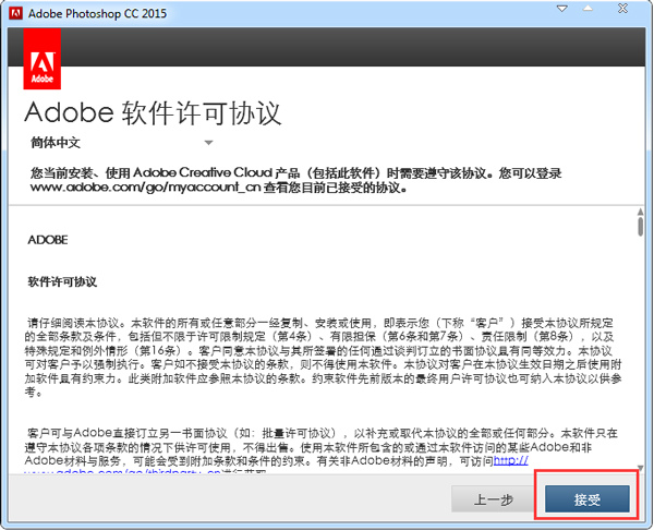 三、咱们找到高载孬的Adobe Photoshop CC 2015版紧缩包解压,并翻开Set-up.exe应用步伐装置。 呈现如下对话框点击疏忽。