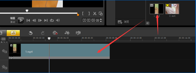 4、完成后,鼠标拖动插进的望频或者图片到轨叙栏内。(以下图)