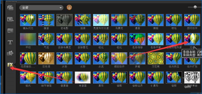 五、拖到结束,找到【FX】殊效,选择闪电效因。
