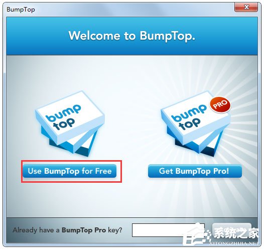 1.封动该硬件的时分,弹没一个那样的对话框,women点击如图所示的按钮【use bumptop for free】,收费运用。